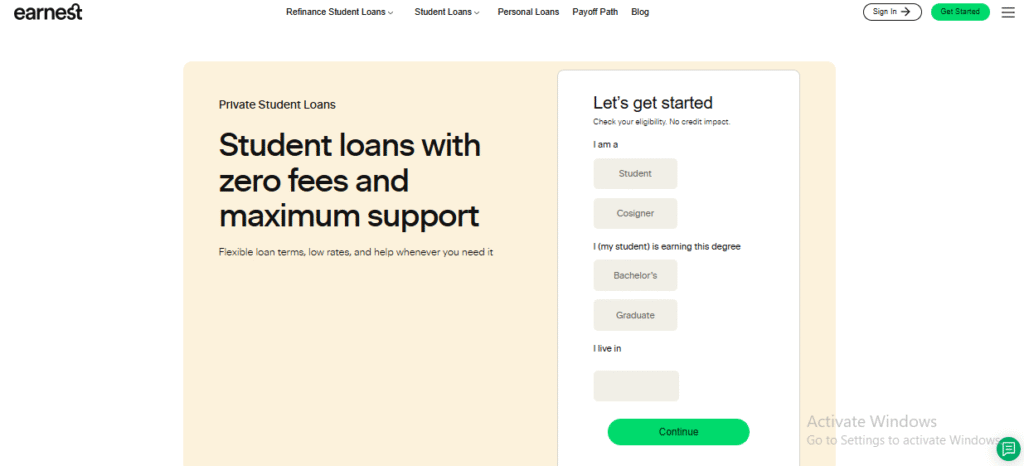 • Best For: Students who may not have access to a credit-worthy co-signer.